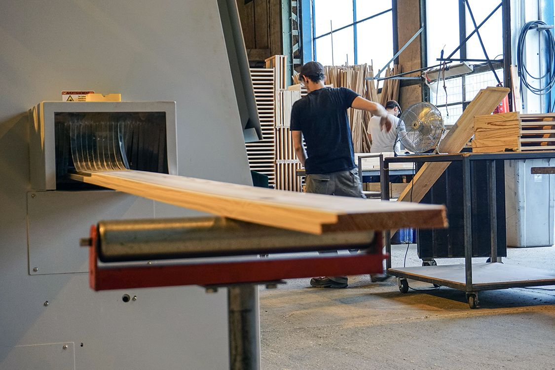 Ce qui distingue notre atelier, c’est le choix d’une production française à chaque étape. Le bois utilisé pour nos fabrications est du pin maritime français issu des Landes, puis les pièces sont usinées, assemblées et contrôlées dans notre atelier de menuiserie à Saint-Juéry, dans le Tarn.