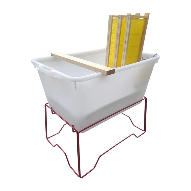 Équipé d’un support métallique, d’un panier égouttoir et d’une traverse en bois, il permet de travailler vos cadres avec efficacité et hygiène lors de l’extraction du miel.