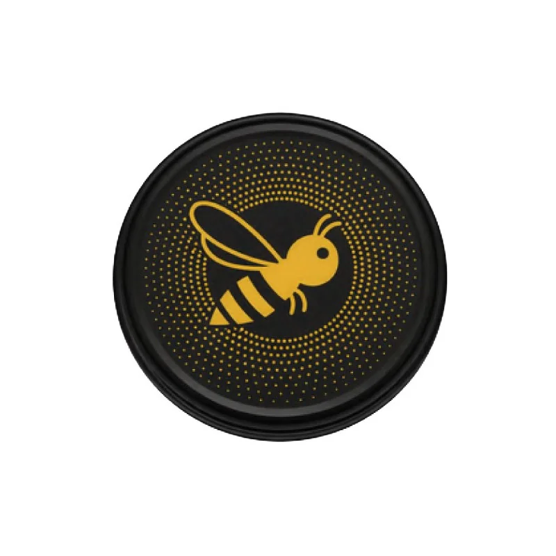 La capsule abeille soleil Twist-Off Ø63 est spécialement conçue pour les apiculteurs souhaitant allier praticité et esthétique. Son décor abeille sur fond noir mat met en valeur les pots de miel tout en apportant une image soignée et professionnelle, aussi bien pour la vente directe que pour les marchés et boutiques.