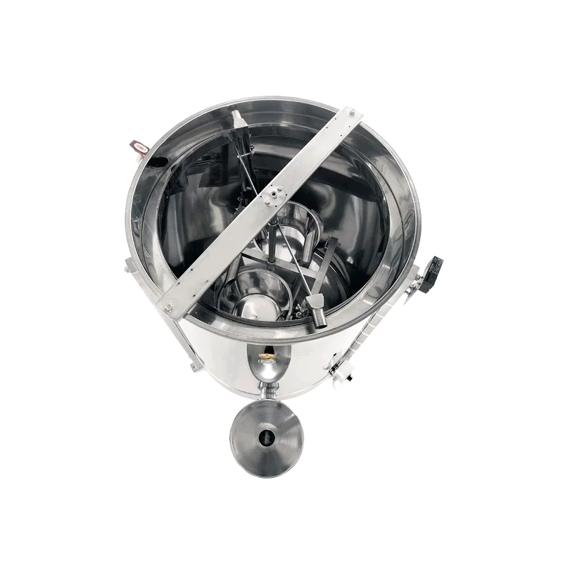 L’ensemble de la machine est fabriqué en inox alimentaire pour garantir une excellente durée de vie. La vitesse se règle manuellement de 0 à 300 tr/min pour s’adapter à tout type de miel, tandis que le fond chauffant (0 à 85 °C) aide à fluidifier le miel et optimise la séparation, notamment pour les miels plus visqueux.
