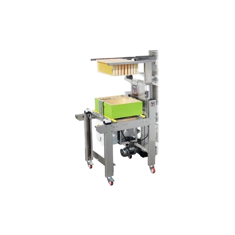 Déboxeur électrique LEGA conçu pour la machine à désoperculer DV4 Dadant. Il permet de soulever automatiquement les hausses et d’introduire les cadres sur le rail d’alimentation sans effort.