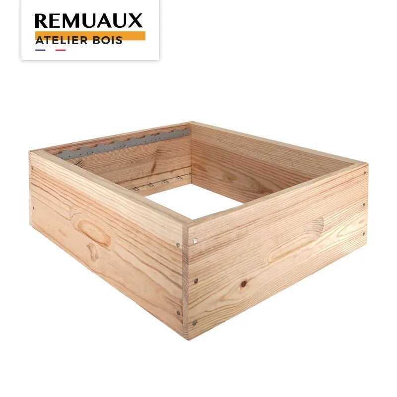 La hausse Dadant mi-bois 9 cadres est conçue pour s’adapter sur une ruche Dadant 10 cadres. Fabriquée dans notre atelier de menuiserie, elle bénéficie d’un assemblage mi-bois cloué et collé, assurant une bonne tenue dans le temps et une utilisation adaptée aux contraintes de l’apiculture.