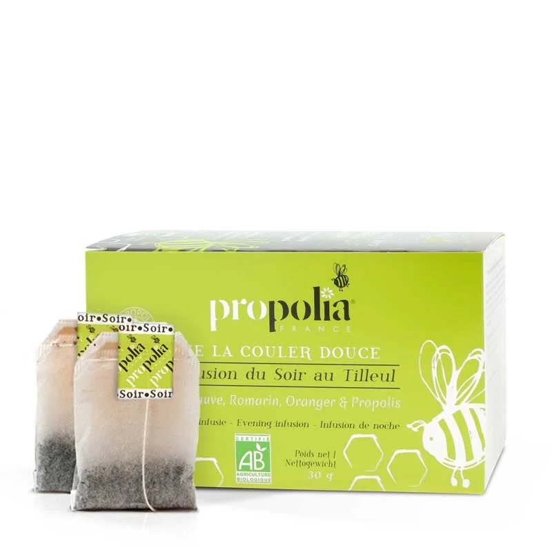 Retrouvez le plaisir d’une infusion du soir avec le Tilleul, la Guimauve et l’Oranger pour une saveur douce et légère, délivrant les volutes de notre extrait de Propolis afin que vous puissiez profiter de ses atouts naturels dans cette simple boisson.