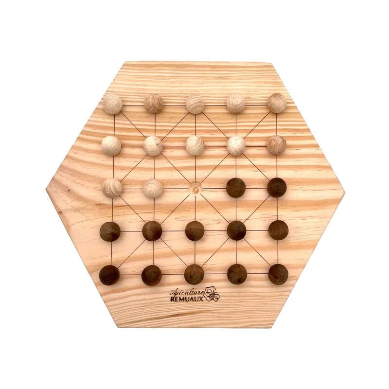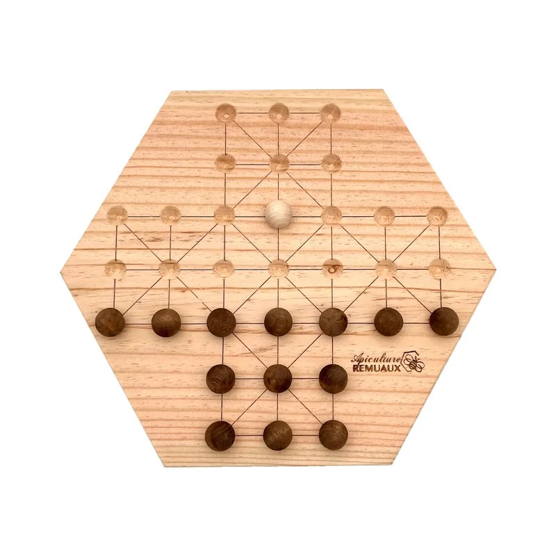 Ce jeu en bois propose deux jeux de stratégie sur un même plateau en forme d'alvéole. D'un côté, le jeu Alquerque, un jeu ancestral qui se joue à deux personnes disposant chacune de 12 pions. Le but du jeu est de capturer tous les pions de son adversaire en sautant par-dessus eux. De l'autre côté, le jeu Ours et abeilles, une variante du jeu du renard et des poules, où un joueur contrôle un ours qui doit attraper 13 abeilles, tandis que l'autre joueur tente de l'en empêcher.