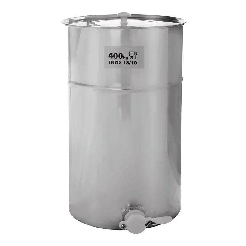 La cuve est fabriquée en acier inoxydable, un matériau durable, hygiénique et facile à nettoyer. Il garantit un contact alimentaire sûr et une excellente résistance à l’usage quotidien en miellerie.