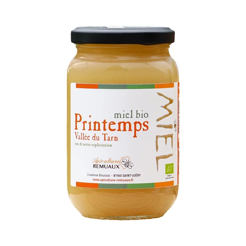 Issu d'une apiculture biologique respectueuse, ce miel doux et crémeux, aux nuances de jaune clair à doré, provient des prairies sauvages de la vallée du Tarn.