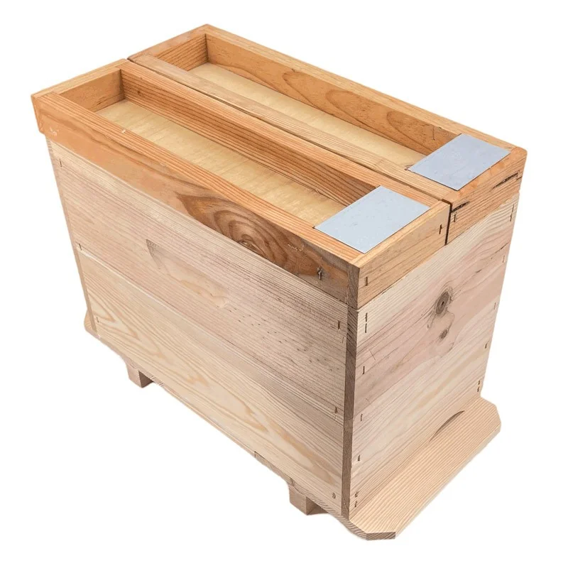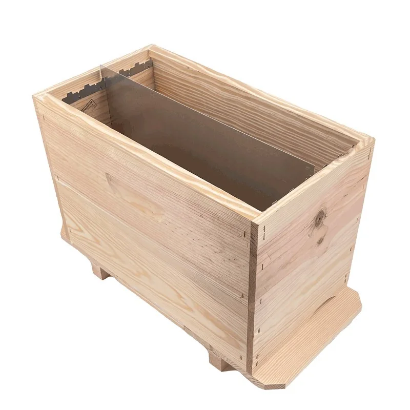Notre ruchette d'élevage Dadant 2 x 3 cadres existe également au format Langstroth.