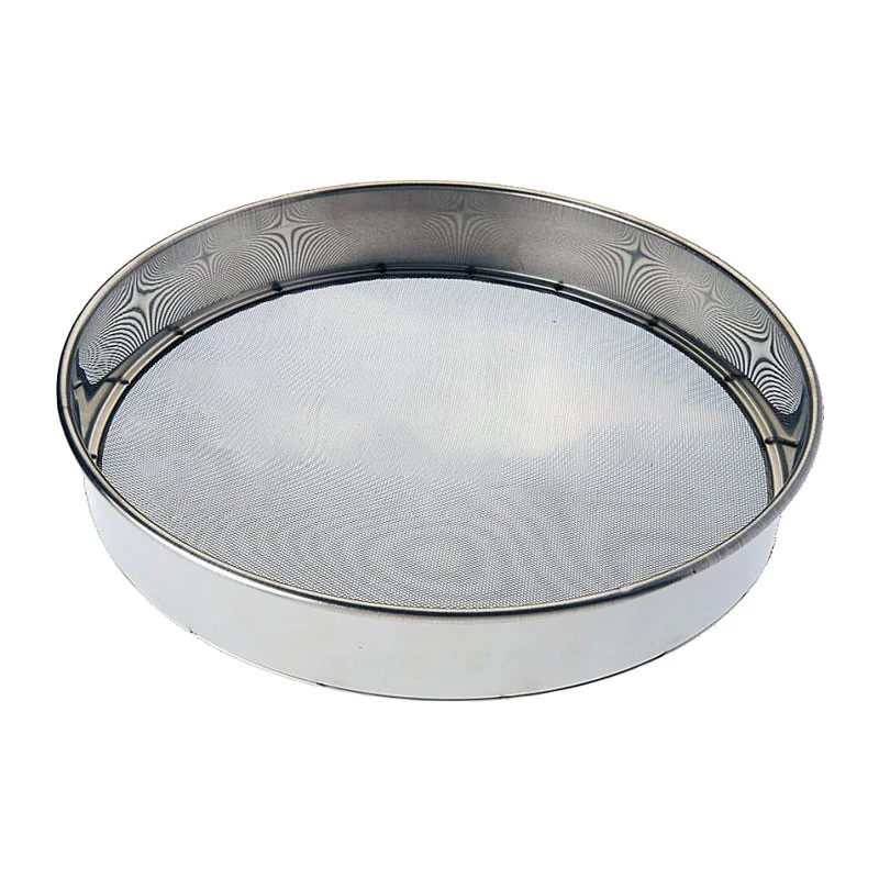 Le tamis est fabriqué en acier inoxydable AISI 304, matériau de référence en environnement alimentaire. Il offre une excellente résistance à l’humidité, aux nettoyages répétés et à l’acidité naturelle du miel.