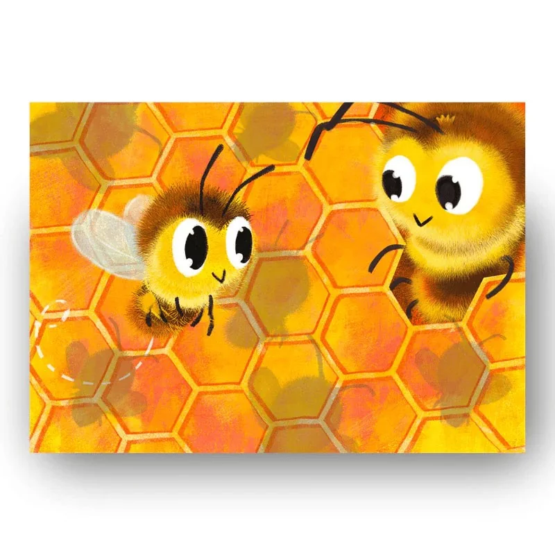 Estelle Nectoux signe des dessins colorés et tendres, remplis de lumière et de poésie. Les paysages d’été, les champs de tournesols et les alvéoles dorées plongent les enfants dans un univers joyeux et apaisant. France Besson propose un texte rythmé, ponctué d’onomatopées et de gestes à reproduire, qui encourage l’interaction et l’écoute active.